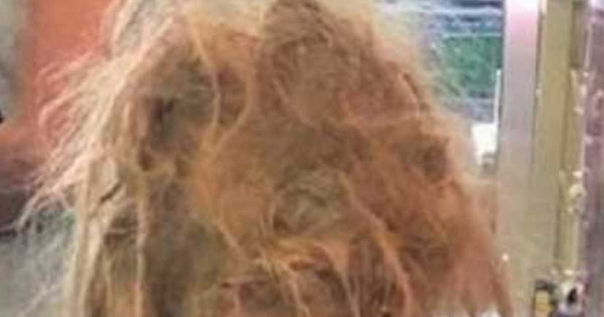 Matted Hair With Weird Material And Blood As The Glue When Pulled It Revealed A Hole Rising Like If He Got Caught In A Small Vacuum Petcoach